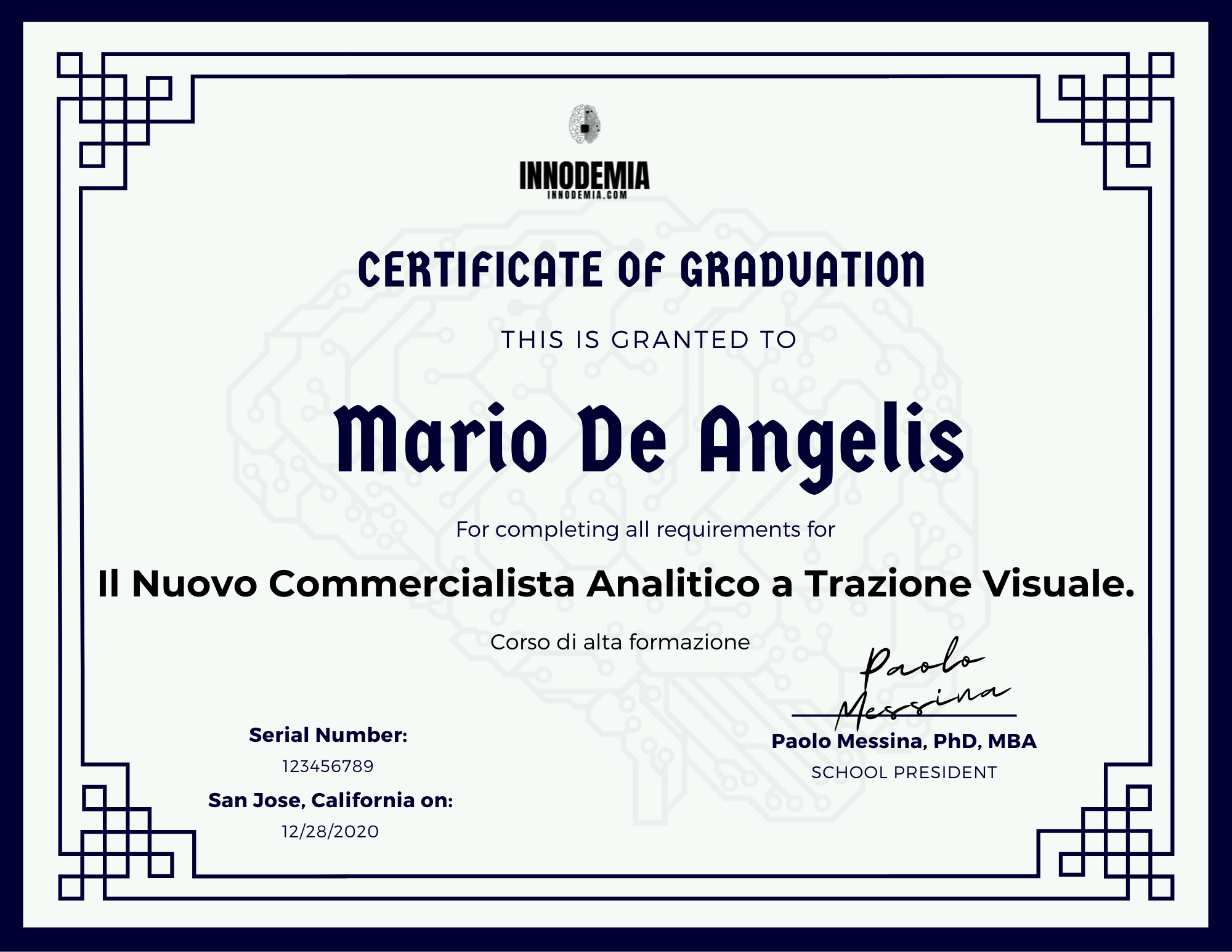 Fondatore di Innodemia, eroga corsi online in ambito di disegno e sviluppo di prodotti intelligenti e nel campo dell’ hyper automation come per esempio i diversi corsi lanciati in Italia per il comparto commercialisti insieme ad Eutekne.